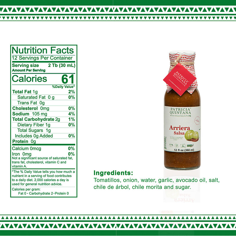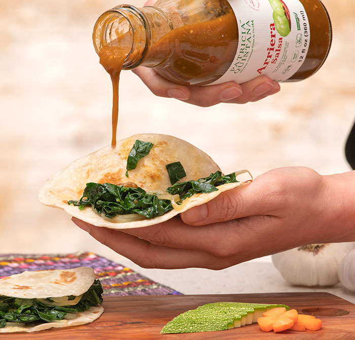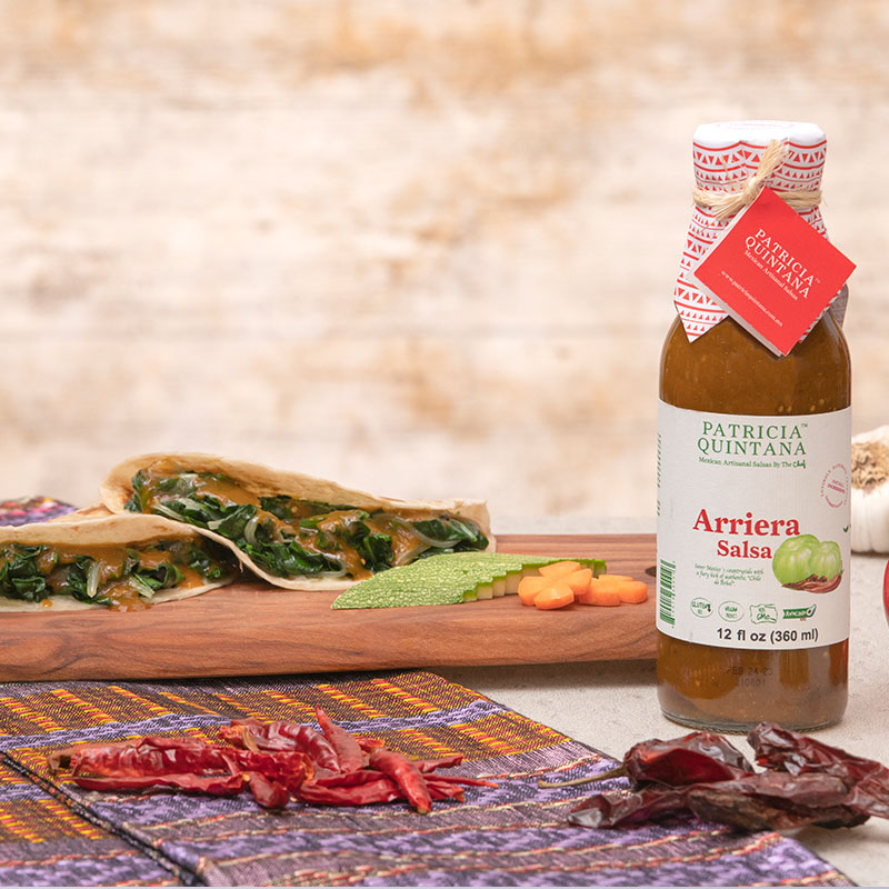 The bright fresh vegetal taste of both tomatillos and a mix of Chile de árbol and Chile Morita come together perfectly and gives a fiery kick. Aromatics like onion and garlic as a base, enhances the flavor. Characteristic of the Mexican Country side, used very often in the Colonial Haciendas.