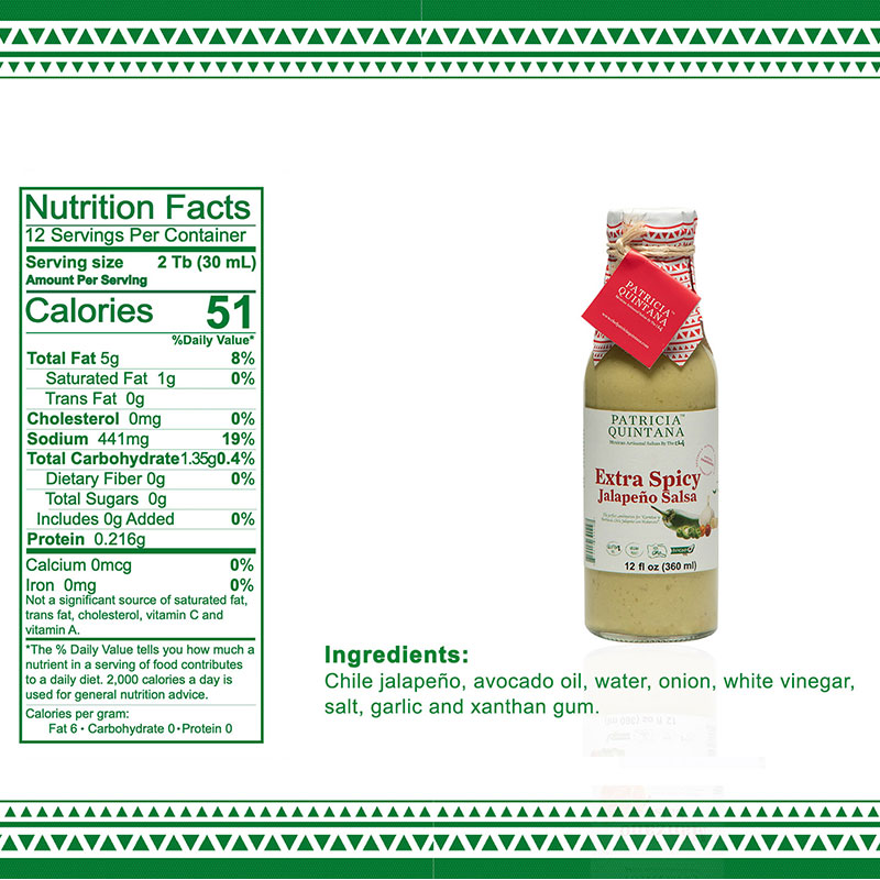Bright and fiery with a smooth finish, the Extra Spicy Jalapeño Salsa uses fresh handpicked produce, like Jalapeño Chile, onion and garlic . It’s rich flavor adds bright, elegant notes to the mouth. Although it’s very spicy, for people who like to enjoy spiciness, they will be surprised on how it combines with your favorite dishes without overshadow the rest of the flavors.